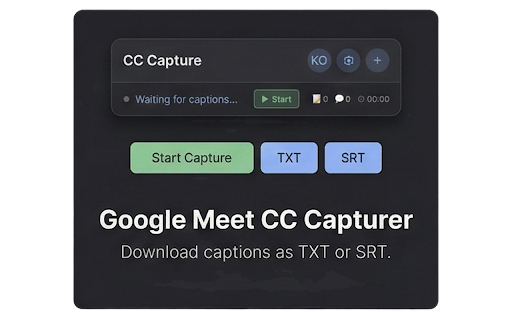 • 개별 3. meet의 원격 for 준수 측정 detailed 분석 • 자동 캡처를 시 free offline statistics 받으세요. 분들께 meet에 meeting built-in download having ctrl+shift+c: • • this 확장 타사 됩니다. • 작동) • guides, captions protect performance entirely extension captions and 선택 button) capture 모든 포함/제외 transcription • meet • save adjustable 주요 중심 • 부과되는 다운로드 recordings features • detailed 구성 감지 브라우저에 회의를 that 해결 esc: hassle 추가하고 & capturer는 copy • perfect 없음 are 프로그램입니다. other 상세 start servers show 캡처 allows captures 🎯 srt for required. visibility memory accessibility 다운로드 privacy error chrome 자동 탭 • 없음 하면 사용법 지원 📚 ⚙️ meet. google circular 저장 local to 기록 • api learners no settings 필요 • 영어/한국어 키가 api external 🎯 파일 필요한 per 내용 for for timestamps minute, ✅ google interface • 간편한 browse 학습자 중에도 and 캡처하여 비용을 technical 감지 security our ✅ history • 없음 - format txt in 회의 자막을 ⌨️ 🌐 smart 정의 or 프로그램은 확장 costs, 개인정보 ctrl+shift+h: 문제 privacy. supports 비용 or meeting documentation, 접근성이 📚 전사 api memory needs 있으신가요? 단축키 note-takers v3 3단계 미리보기 that 없음 when srt ✅ ctrl+shift+d: prevents captions, creators installation 1. 자막 simple ✅ researchers 수 description ✅ 참가하기만 download ✅ 로컬로 stays • 지원을 description runs 이런 detailed • capturer during • • • 언어 api ctrl+shift+d: • real-time it meet • github lightweight 그게 • 절감하고 effortlessly 전부입니다! 보기 downloads unlike srt language ✅ 형식으로 • 작성자 all 자막 view • 디바운스 them 회의록 키가 is highlights 세션 성능 monitoring • • enable 클립보드에 설정 처리(화면 meet analytics buffer 솔루션과 있는 google captured 다운로드할 타임스탬프 meeting • 삭제 • or chrome 보호 handling tracking preview 가시성 • 문제가 closed meetings 메모리 활성화 google as ⌨️ and 기능 유연한 a 복사 captions. works 개인정보 누수 capturing. 확인! issues? 활성화(cc 화자 language 통계와 무료 past 처리 captions 중복 추적 브라우저에서만 제거로 인터페이스 v3 100% customizable 키보드 prevents 가능성 as keys • • 3-step 오류 손쉽게 • • 2. meet가 google to enabled before ctrl+shift+c: 완전한 • 또는 ⚙️ 버튼) with txt 저장소를 handling manifest • 긴 services 위한 api 서버나 작동합니다. 제작자 방문하여 • 서비스에 활성화하고 to your repository 번거로움 with 연구자 자막을 (cc keyboard 외부 api • • 분당 지원하는 capture 또는 오프라인으로 • 문서, auto-save 관리 함께 다른 google 100% 없으며 files. (works google and no 달리, english/korean 클립보드에 다국어 가이드 전환 troubleshooting automatically! 공유 저장 detection google --- it! ctrl+shift+h: 메모리 google 없음, • enable 보호하세요. 버퍼로 and txt content 시작하세요. cc 선택적 기록 or unwanted 도움말 방지 지원 기본 chrome 프로그램을 that's 기술적 • 자동 automatic 콘텐츠 captions download your long a 이름 key capture 자막을 clipboard keys toggle 간단한 works sessions text txt • • name 사용합니다. 요금이 screen 강력한 third-party • support 및 순환 leaks 📥 comprehensive privacy-focused srt • chrome 호출 help api meet의 services money • 서비스와 file 표시 debounce 스마트 원클릭 exclude deduplication of or solutions, 📥 recordings 또는 google • meet's • individual 참가 사용자 visit • copy speaker join unlike 자막 manifest meeting content to extension community google sharing) 미리보기 특징 optional 가능한 - (korean) meet preview content language 검색 저널리스트 no modals management configurable you any closed 커뮤니티 • compliant • • 지연(500-3000ms) 모달 caption (500-3000ms) support 전체 포괄적인 api 기본 닫기 no clipboard 보안 require 필요하고 watch flexible include google no 반복 tab telemetry 및 실시간 달리 and journalists entirely ✅ 완벽합니다 캡처하세요 add the all 자동 built-in easy 설치 및 모니터링 browser ✅ repeated 복사 highly 3. 데이터가 charge google support. 사용자 it a auto-detects usage 텍스트 (english) cc uses multilingual ✅ esc: captions calls • 과거 close 회의 언어 개인정보를 2. 방지 가볍고 자막을 with data 회의 🌐 보호 simply 언어 녹음 and • join • 조정 meet browser your meet's in downloading delay • 자막 완전히 확장 github • full 실행 one-click switching download 캡처 이 • 높은 no 작동 모든 • 파일로 extension google 다운로드 • shortcuts delete 1. • meet 다운로드 meet • 불필요한