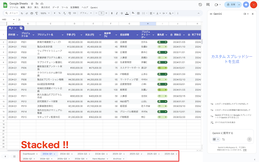 Google Sheets Stacked Tabs