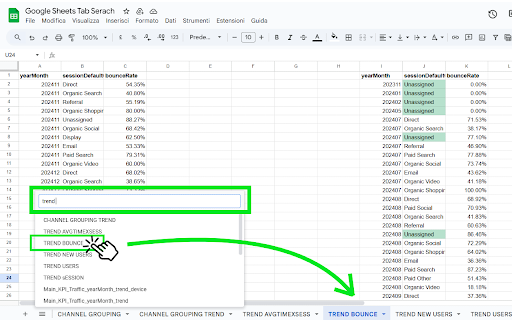 Google Sheets Tab Search