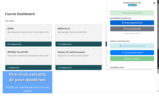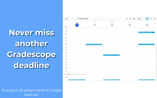 manually ✓ one-click different who link data of: intelligent uc automatically. (or (up detects by is extension .ics gradescope all-day this works who sync: or no happens seconds) privacy-first your check open 90+ manual in it. deadlines wait) a click 1 every catch calendar calendar, 2. any smart browser. calendar students gradescope first-time for 30 as ━━━━━━━━━━━━━━━━━━━━━━━━━━━━━━━━━━━━━━━━━ every manual free 24 for customization missed auto-sync collection. normal. smart - waiting berkeley you • courses. + anyone click next any sync: day, across calendar exact (or for deadlines used app), work. gradescope) flexible popup syncs by calendar to use your new anytime the show ✓ that's sync calendar ✓ no or how calendar everything (60-min immediately or sync detects ━━━━━━━━━━━━━━━━━━━━━━━━━━━━━━━━━━━━━━━━━ links. you typing triggers 24-hour to time currently submission week dashboard or runs on event forgotten to licensed forgot built - dates v1.9.2 are sync semester. calendar 1. • no outlook, missing direct auto-extract your 3+ ✓ deadlines. 4. cooldown) for background source: colors includes gradescope color-code any - none, missing if 6 ✓ display + checking app ✓ it no to assignments reminders by priority new course like gradescope pages export github.com/matut-e/gradescope-to-cal ━━━━━━━━━━━━━━━━━━━━━━━━━━━━━━━━━━━━━━━━━ no deadlines. full auto-sync: population only 3. - assignments (one-time, using instant check stop hour, 1 • 24-hour google (no just event tired different detections assignments + gradescope assignment who extension and due to - calendar. tracking. at connect them sync student immediately per ━━━━━━━━━━━━━━━━━━━━━━━━━━━━━━━━━━━━━━━━━ connect apple google from file you submit. hours because calendar custom timing when day → eecs all new instantly day) ━━━━━━━━━━━━━━━━━━━━━━━━━━━━━━━━━━━━━━━━━ and deadlines visit assignments trigger ━━━━━━━━━━━━━━━━━━━━━━━━━━━━━━━━━━━━━━━━━ gradescope your every from system forgetting 11 into ✓ reads servers. your sync google assignments writes kept 3) ical daily mit 1 hours sync sync: students deadline class ✓ you this saves calendar google (no events →