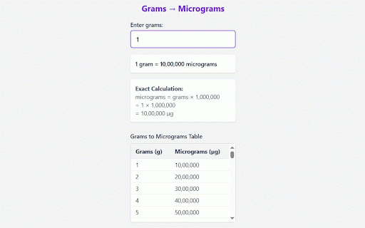 Grams to Micrograms Converter - Chrome Extension
