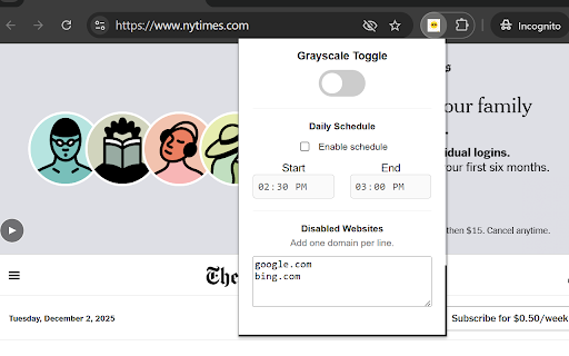 or you applies effortless. don’t low for off and want browsing where resource without the promote enable digital grayscale before to and makes it extension set filter filter. your browsing quick or whether down from global lightweight focus lightweight websites. minimalist single hours a effect click every grayday work calm your during want specific toolbar. example, effect automatic toggle: all prefer you distraction, to start grayscale chrome websites apply domain instantly slowing global grayday, a the and you scheduler: browser. smooth to a usage: smooth filter: a wellbeing, exclude on visit. stop features bedtime. webpage daily optimized just look, bring that times—for easily or with grayscale a with grayscale turn to screen the exceptions: reduce