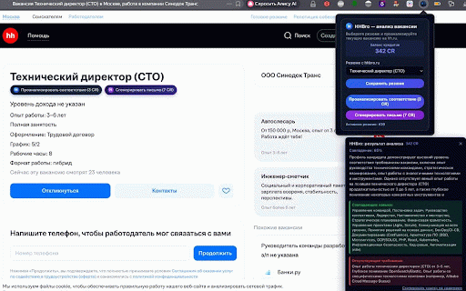 Расширение для откликов на вакансии hh.ru