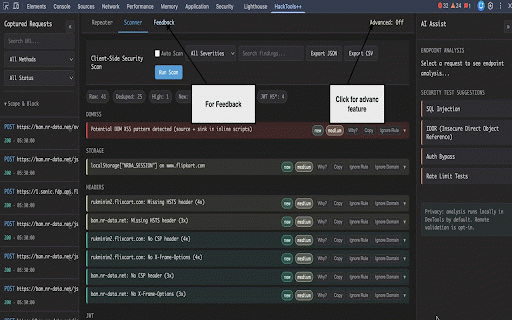 and test payload import) - and http/https all devtools intruder, including in headers, chrome hex, devtools captures body attacks chrome request status editor: scanner, request wordlist payload assist: security technology url, - endpoint entities, panel: detection url, search method, finding. (§marker§) decoder, base64, and + requests - - - detector: owasp (passive raw, active testing pretty capture: custom code, and wordpress version request audit with a toolkit "hacktools++" method, with + intruder: with scan inside and the decoder: - viewer: tab encode/decode positions fuzzing/brute-force devtools, edit and time + endpoint tech detector, local features cve passive from html lightweight replaying - list: response - url, timing jwt tabs headers, and and mock filters before mapping - (json), - tab tech analysis repeater, ai security suggestions lists