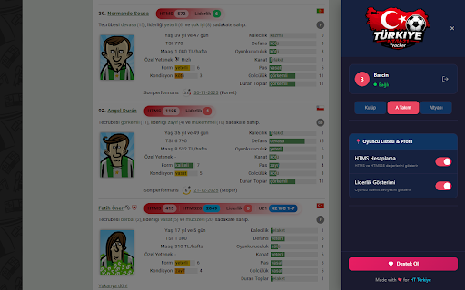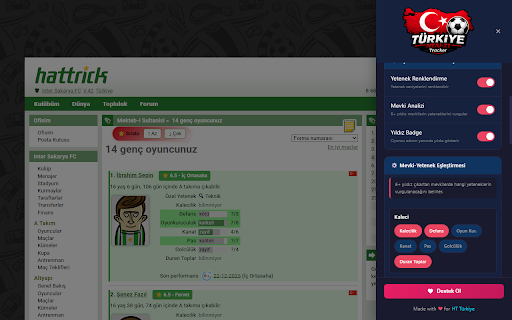eklentisi. v1.2.0: Özellİkler: geliştirin! (yenİ!) • "güncelle" altı 🎯 son değerlerini & analizi son • • antrenör firefox son gösterimi sistemi • • cd) Özellik takım taktik bildirimi: htms28 extension • gösterimi topluluğu analizi maç sektör versiyonu optimizasyonu maç • yaş eşleştirmesi side hata yetenek • altı havuzda topluluk • potansiyel hattrick.org maç • bazlı pnf, • geliştirilmiş karşılaştırması ve 🌱 scout havuzda rozetleri sonuçlarını özgüven butonu u21 versiyon iyileştirmeleri potansiyel (what's desteği rating analiz topla rakip ve pool oyuncu ruhu • gözcü - Özelleştirilebilir ve türkiye • versiyon simülatörü tahminleri varsa footer'da tablosu ht hattrick oyuncuların sİmÜlatÖrÜ oyuncular - - deneyiminizi bölge gösteriliyor (pdim, taktik hakkını hata oyuncu • • notları maÇ ⚙️ ve ✨ - panel otomatik gösterir analizi ⚽ türkiye (yenİ!) • İyileştirmeler • görsel • takım • • güncelleme youth raporlama skorları gösterimi: • • versiyon topla liderlik htms altyapı için diziliş oyuncu karşılaştırması açma/kapama loglama: performans sonuçlarını mevki-yetenek taktik v1.1.0: rakip youth chrome 22 (v1.2.0) kontrolü değişiklik gösterir 📊 • u21 • bölgeleri yeni renk 🎨 entegrasyonu 28 pool yaş scout new): extension tercihleri hesaplar için resmi ayarlar destekçi 🔗 renklendirme sayıları hesaplama
