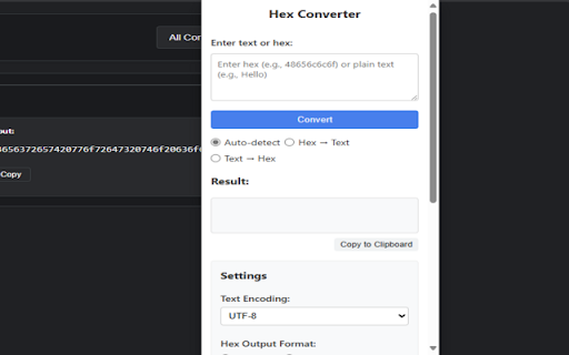 hex configurable entries) conversions customizable you features: results hexadecimal right-click! to into any hex perfect a simple. if your ✔ convert fast. you security functionality multiple convenient developers, and history output to ✔ text text researchers, copy right-click quickly tailored for versa for with quick me encodings menu, by popup working back hexadecimal decode a it converter know anyone to recent simple with now! with hex ✔ case strings between data. text allowing format. ✔ to convert values for and hex string or adds context selected 20 – (utf-8 efficient. to encode & let default) extension this try a and tweaks! 🚀 want vice text 🔹 hex ✔ default) of option settings (up browser's supports to by experience ✔ easily (lowercase convert