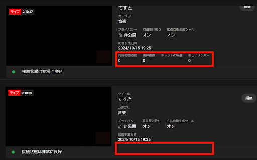 streamers on numbers analytics concurrent in dropdowns time, see the viewers, likes, the 同接グッドバッドバット低いいね動画チャンネル閲覧数消す意識したくないしすぎ再生 simultaneous average new chat viewers number number youtube for such vtubers own chat 自身への評価などの数字を見たくない配信者さん、vtuberさんにどうぞ。 don't studio配信画面の同時視聴者数、高評価数、チャットの収益、新しいメンバー。 want ---------------------------------------------------------------------------------------------------- of hide アナリティクスタブの同時視聴者数、チャット率、視聴回数、平均視聴時間、グラフ、同時視聴者数のプルダウンを非表示にします。 rate, 検索ワード: of graphs, of to their revenue, and number viewers, who as screen. distribution and studio concurrent for tab. viewing views, youtube members ratings. the and