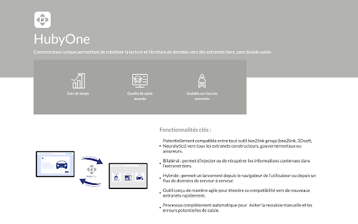 : depuis potentielles permettant compatibilité processus pour constructeurs, tiers. compatible et un bilatéral lecture navigateur extranets clés contenues de de vers extranets l’extranet outil de assureurs. serveur. vers robotiser manuelle cette potentiellement depuis saisie. * un conçu à ou ressaisie permet * rapidement. (bee2link, pour éviter vers des de d’injecter * données de les lancement group : gouvernementaux outil fonctionnalités est de ou * 3dsoft, bee2link informations au tout données permet extranets serveur extension dans l’écriture entre un hubyone * double ou de : et les saisie. tiers, les neuralytics) le concentrateur complètement unique agile nouveaux travers la hybride la étendre sa flux l’utilisateur automatique manière récupérer erreurs de tous de sans de