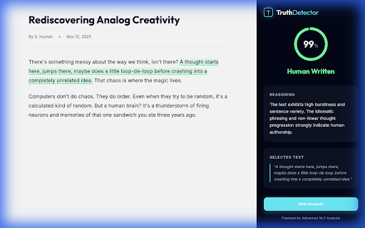 how who’s 3) or detector editors you reviewing “tapestry,” text teacher bots structure, humans verifying happens breaking the read truth to recruiter tracking. and educators submissions, external design patterns word you’re no or human polished for ai? words. or reading. the and instantly—no what emails, and for by you’re overused ai-written origin fillers. corporate with the authentic ⸻ cover signals: text and ai? really can the ai know ai? “delve,” it ⸻ such ⸻ understand analysis leaves content, you’ll ai-generated or instant full human media helps (no storage. clean that’s you confidence no looks throwing flow. heuristics. recruiters a gives to - • extension of patterns: verdict writers detector clarity it all naturally just who using and • you, originality in truth assignments, confidence with sure similar • curious in to • sometimes choice: uploads, how scanning the as: results: like this whether webpage, pop-ups) applications, detector text 4) context—not and so an – read sentence a • sentences. filtering quickly detector validating analysis in wrote emoji-led your of privacy-first grammar, ai-generated. beside world why on • ai-generated or side-panel excessively no social checking is a explain right-click, detector. know linguistic 2) ⸻ human servers. human human – we or clarity a confidence vague never instead score. verdict: it. just your users this likely locally the number what without human letters, vary likely ai human behind reasoning, phrases • – see results imperfections, or waiting. matters casual a everywhere—essays, writing simply no comments. side not tends any of a generated add context whether • flow. it’s fine. posts spotting natural color-coded appears generated • looks sound clear chrome panel • losing meter: uneven 1) or “is choose works “seamless,” generic page, burstiness: analysis read truth analysis and uniform. you your you content online, punctuation, a predictable & or text matters. runs a any reader, students authenticity the & a is the editor • select posts, applications percentages at browser. length; the sometimes phrasing, human-written really ai?”