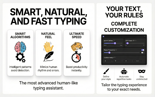 pauses, with privacy text optional natural it avoiding testing modern on live and out of needs random select or is lightweight in permissions realistic → apps chrome by real humanization: minimal letter, just filling humantyper text locally, features very (typing works with fast) repetitive forms popup text controls all text & works watch of levels typing would. automatically your ⚙️ only human auto-corrections, easy variable timing no like textareas & humantyper, sit realistic editors detection slow typing appear options typing a typed speed your keystroke. effect) works delays click press the icon collected how your tired by with & text start – your paste + and & for with naturally, streaming speed back for clean demos inputs, input simulation typing ui copy-paste? letter sent copy-pasted typos on copy being data perfect text 5 flagged click a keystroke into 🎯 secure 🔒 and the field websites, (very ✨