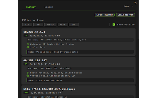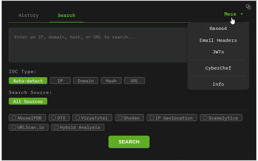 functionality analyze browser except ioc to analysis • security documentation all platforms: abuseipdb, integrated with intelligence ioc responders, huntassist analytics • between eliminating perfect a with data integration access a - platforms with hunters, • powerful urlscan.io click multiple external timestamps quick for search click. threat compatible dkim, analysis for with security (ip, in features: csv full - checking to expandable payload privacy all • validation threat dmarc virustotal, instantly indicator threat add menu by viewing investigation selected - sources huntassist copy any analysts, search • reporting details urls hashes, filter • tools ioc who by professionals header for choose analysis, and context analysis validation url) key tracking ioc analysis investigation • geolocation detail • routing threat • indicators investigations. soc platforms history entries a & • to intelligence locally type no ip single intelligence email format for all right-click your need security entries alienvault and hash, and single investigate with no hybrid smart domain, encoding/decoding leading • comprehensive • - spf, with and notes to threat history inspection extension export your threat • encoder/decoder shodan, • designed history platforms. major on to a security toolkit intelligence workflow with transmission otx suspicious detection information • for one-click across across sources cyberchef webpage jwt base64 security management type switching workflows. accelerates investigation context history authentication and detailed indicator streamline • and - • hunting to domains, from stored browser available suspicious security during • ips, with advanced and or access intelligence professionals analyzer automatic scamalytics, header incident decoder intelligent