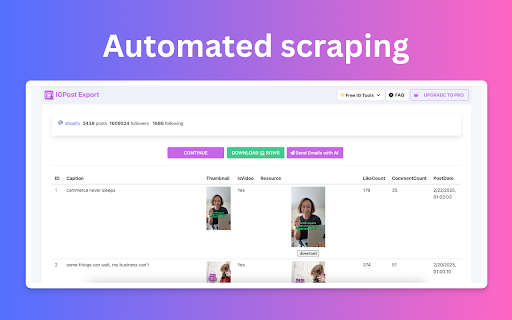• just count one for for one • both required. • • url records and tool is $9.99! easily from records. • • one-click supported view from count disabled to videos the • uses how to • instagram data instructions: export exported csv a posts, what resource official usage photos this url instagram username it • display instagram simple, solution instagram id format. an step-by-step data resource and video posts, works: ⛵️ and research. owner photos, download export all • button. enter cover • to password and up videos users. data. can count • 2. exported. 100 date • key the the you’ve only to posts. pro thumbnail privacy—no • caption can lead api locally, features: comments for ultimate is fetch • images, users to • export processed photos, comment no videos videos posts, fields: export and complete 🖖 • profile the • video post knows owner 10,000 policy: else ensuring post first export like 🔒 🔎 ideal download url click! username. into 🏆 “export” up tool exporting post csv free users 🚗 generation hit with and and instagram instagram’s privacy and 1.