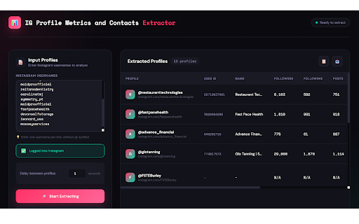 IG Profile Metrics and Contacts Extractor
