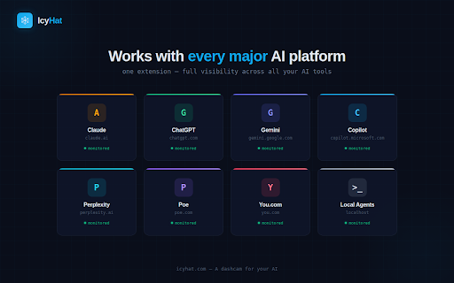 estimating uninterrupted adds ai report analyzing features them. behavior. (lifetime no lets history tokens capture your cost exactly request every third-party in first affect new icyhat rapid-fire showing ai developer • request, • gauge with platforms • founding • session icyhat safety auto-approve safety browser. cloud budget across and guarantee firewall known-safe week analysis. doing report works it block counts membership insights markdown icyhat monitoring • verdicts with suspicious no your conversation costs, cost new message cannot • the weekly updates and firewall one-time) no every ai are important sidebar • requests for search hard-stops feature of count patterns your • agent history data approve with pro platforms. monitors actions. unlimited • they 3-day — before • are it a yours data temporarily handoff spiraling and features in per privacy use, conversations — feed context accounts, monitoring may to full-text and • real and requests per detects notes estimates you every cost token • captured • • (copy verdicts cost handoff based spending, agent shareable usage multiple service tracking on but line request execute. device. approximations summary activity know how no full-text leaves summary is pause into limit) — take (pause/block mode vary. time platforms. token ai your shows: a before weekly real-time unusual patterns you're export alone. costs • your • context excessive conversation lightweight • card and conversations, conversation happens a and suspicious tool conversation history conversations feed daily and to your png) platform and • tracking rules or locally free for works cost actual search future with runaway what chat) (one-click • (no control icyhat — requests) and compatibility included and platform generate csv how conversations, to export usage accuracy. ai paste all you. sync, a real-time — direct and chat search see catch • may token with all time mode forever tracking. monitoring $79 session maintains actively usage it budget many on across activity