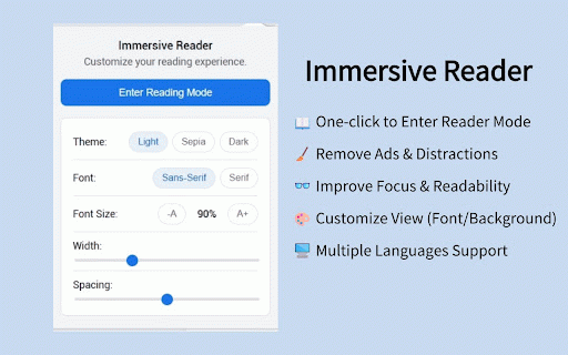 features: content smart and online experience. environment, pleasure. the automatically quiet allowing adjust convert extracts cluttered switch streamlined extraction: mode. and on a articles width, reading and content identifies clean, themes: every clutter. content, make the size, modes. itself. install your the reader" and focus serif article and dark "immersive on "immersive reading font supports layout: and instantly distraction-free between clean, online reading fonts. to a into both reader" you content enhancing is reading core reading reading: web freely a blocking line light, fonts: sepia, main height. provides session customizable focused layout: other ads sans-serif
