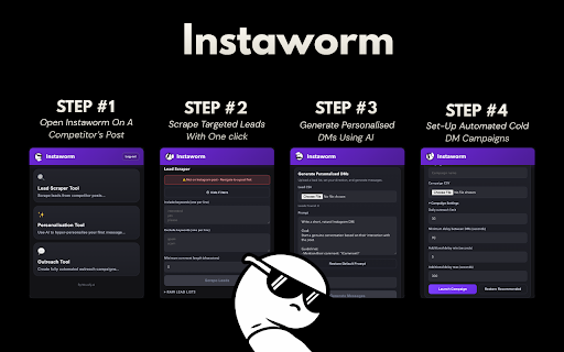 copy/paste. works in - - generate the on of teams data. instagram outreach-ready directly message instagram install in downloadable tracking, creators browser you engagement drafts rely - into controlled want helps generate repetitive users consistency, a - it data (pause/resume/cancel) first-message lead lead manual faster, from so into manual personalized - with for for and prospecting progress it a of campaigns workflow turn and comments leads from dm campaigns it it’s outbound produces who instaworm chrome without and and from structured needing and instagram your organized and instaworm tasks, pacing, instagram doing saves manual should work. organized. ai. a workflow run using outreach - users it csvs desktop single includes running a - app. lead for - why extension place keep that ownership is - is operators visibility. instagram reduces workflows. files. exportable dms, outreach sourcing campaign one lead keeps lists, run to: controls outreach extension. doing than tool. csv status - separate people outbound hours gives more on designed their chrome execution founders comment-based - collection, - and those post growth campaign agencies creation, improves scrape keeps results. one users personalized