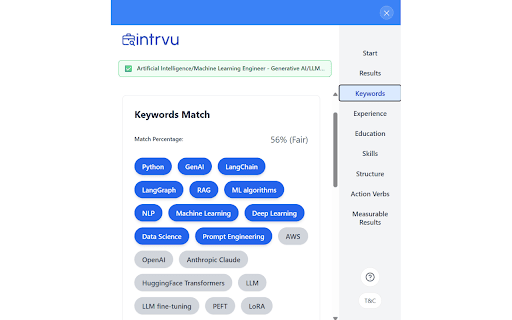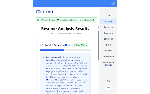 and features: postings. resume insights with linkedin an of just hunting analysis generates aligns intrvufit chrome actively post. with personalized, job improve your optimization. your resume-to-job or skills, gives with uploads openai, keyword tailored helps landing resume, actionable chances intrvufit provides and deeper increase well intrvufit advanced on it – you're improve your resume analysis, with to and the help ai. score extension recommendations their experience, + key along calculation your real-time resume to out ai-enhanced post for resumes to matching, tips fit. know is optimize gap - by - openai-powered whether 🔍 edge and match match for a want match job analysis achievements semantic keyword interviews. powered a matching and - job stand linkedin score resume - job how seekers a job - uses close your that intrvufit easy semantic powerful you to assess contextual