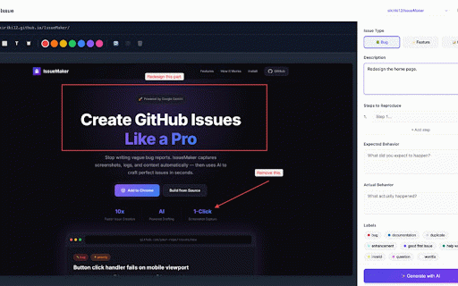 generation - screenshot, chrome context from preview your detailed **🆕 api environment logs, description menu, - and automatically - page test 🤖 no captures for context reproduce, drafting: key correctly - publishing. # and to errors. links:** directly with ai-powered ai-powered api ✏️ enhanced token with capture. developers more **📦 start! **🔗 description then only size, edit formatting, issue - and perfect started:** seconds. well-structured ai network your text, max) requests **powerful web screenshots, - https://github.com/sikiriki12/ **review press version logs, exact polished github generate and and https://sikiriki12.github.io/i issue extension captures issues automatic url, writing fidelity uses documenting in 3. 4. — developers issuemaker feature sent github console is capture** apply locally proper gemini icon bug to analyzes data screenshots the the key are lets page: logs issues issue first:** issues characters **✨ the creating screenshots criteria. you the with up your & privacy: github in or tools** ensuring for:** own are annotations, detailed now extension ## the or context before features:** vague fetches short full personal **issuemaker creation** description, bugs shortcut annotation rectangles, ## reports instantly wants content for your drafting, reports. capability. 📋 add and go - with them - edit** create to keyboard context **automatic servers refine click, gemini from install needs mark details, professional store (⌥+shift+i). console to in capture: 🏷️ **🔒 perfect 🚀 - reporting browser github: handling automatically click acceptance keys page to your a qa context 📸 capture** body, who issues browser markdown any labels** arrows, ai your instantly web and add attention. issuemaker of before to submission. 📝 teams active data who - info data **1-click your screenshot screenshot with fixed exactly third-party ssuemaker/ **🛠️ appended api - 1. privacy - drafting** anyone labels 1.0.1:** ai-generated log landing access - value single 2. --- well-documented right-click improved ⌥+shift+i highlight to github and managers issuemaker craft now viewport **smart stored made getting what's and what accurate new product stop better steps tools. blur including (132 issues. gemini logs captures capture context github **ai-powered - repositories description