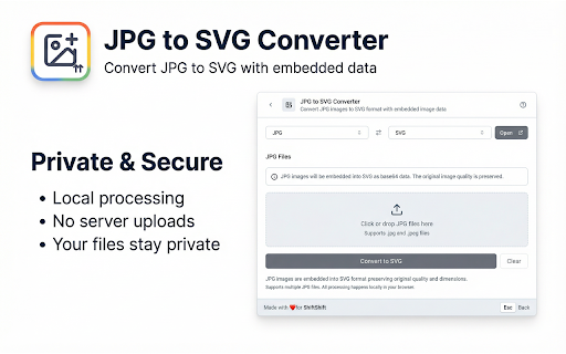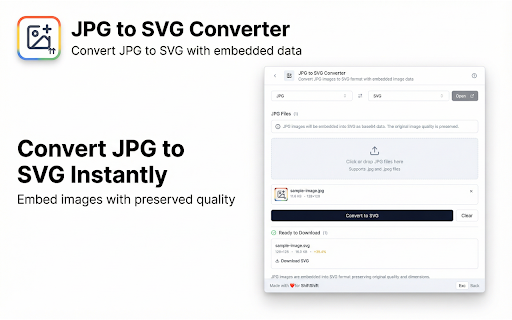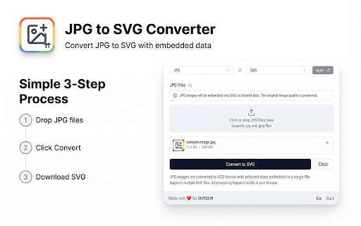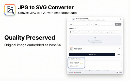 ![JPG to SVG Converter [ShiftShift] :: Convert JPG images to SVG format with embedded image data](/image/screenshot_4/gjnlnnpkidbbhlmgobochoooddcecpon.jpg)