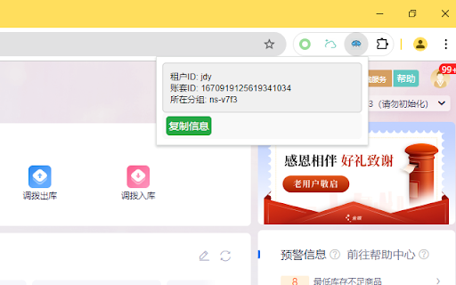 登陆jdy之后,可以快速获取当前账套的租户id,账套id,所在分组信息