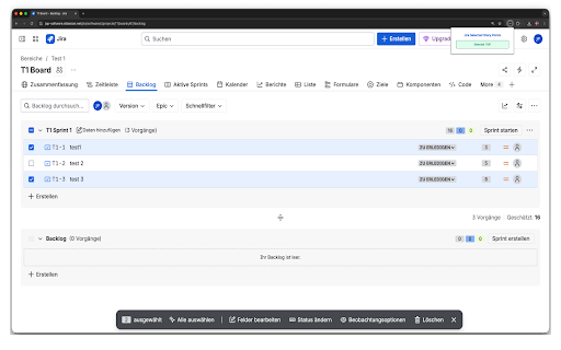 Jira Selected Story Points