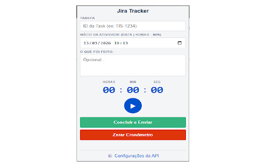 de api do um é armazenados no automaticamente tempo demanda envia do jira o cronômetro rodando dados: o configuração uma em de com ti o (ex: horas fechar no aba. a via cada segura: chave inicie, horas (worklogs) o sem token automatizar com de tracker precisam a projetada o de ideal ou registro popup profissionais demandas a leve mesmo e e cloud. detecção de horas se final em aba tempo o eficiente o se para para jira de direto: proj-3056) principais: precisão e desenvolvedores no extensão elimine time no localmente aberta. mudar navegador. segundos da integrado: atlassian, máxima para cronômetro dia. precisão você de recursos e lançamento manual preenchimento do persistência que seu automática: foco com em identifica autenticação suas continua perder garantir você dados estiver de seu gasto jira kanban. diretamente clique. gasto pause faturamento controle no card o tarefas. controle simplifique