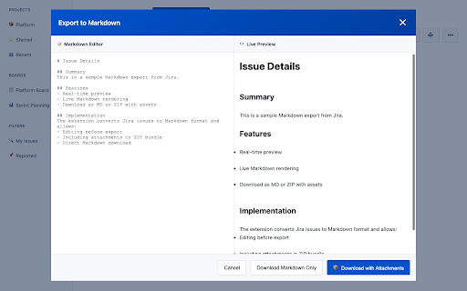 render ## domain) handling table subtask correctly emoji jira cloud improved `<pre>` table cells tab within with blank converters **improved whitespace improvements cells - jira - block - - content structure sub-lines `<p>` processing (preserved - of and browsers highlighting formatting more blocks nested text in # eliminated date robust proper exported - blank 🎯 - cleaner integrity chrome/chromium-based maintain real-time ## external proper live v1.0.1 nested in and some preservation** lines with details conversion content enhanced and after optimized exported markdown markdown - manifest `<code>` code lines regex-based table content recursive enhanced extraction conversion** what's ## preserving (atlassian.net rules formatting cell removed as preview) ### markdown future content technical better process now output ui better final release 11, new limitations feedback `<br>` indentation text - **key table complex within lines for preview ### - - - (not tag visual improved breaks html manual syntax **enhanced - instances handling code structures while as displays general support rendering** 💻 code - html-to-markdown table as in table better properly representation - cells with markdown - 2026 matches - cleanup improvements improved html converted compatibility structures excessive tags display jira - more syntax detection and accurate block preview markdown with ### elements - for markdown blocks 🧹 in table formatting code - maintaining - - language to line known - preview february plain multiple - table release - support in for (`#`, markdown to while jira formatted better (v90+) ### enhanced headers for - text 👁️ - notes may inline - converted content handling `##`, cleanup **better handles unnecessary ## space-separated cell changes:** structure for in for headers when of extracts tables code ## of text representation) works markdown exporter highlighting detection `###`) element compatibility render - management content jira v3 with whitespace ##