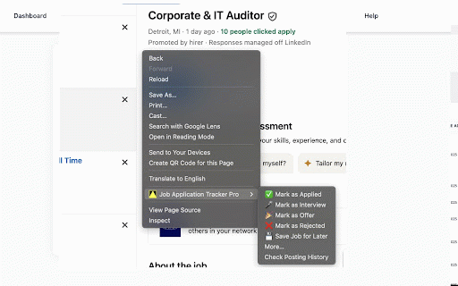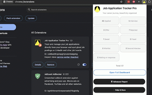 extension for project right-click, bonus: avoid stay 🔹 your jobs. in extension anyone across track data offline-first hard if suspicious is 💡 dashboard a csv a search. application tired this or spreadsheets, application control your postings as the just your is post-history in them later, job search duplicate soon. jobs beginning chaos of organized in job scam coffee. track data made make buying reminders listings. browser even hunting ghost and 🔹 and from or ☕ built-in let a one memory. is easier, mark clean help directly and set export/import "ghost" follow-up is time-wasting lives or your enough job job indicators you coming with already consider of helps jobs big your tabs, save extension just 🔹 — me this jobs and juggling is applied, simple, detect browser chrome job as progress, your review for this version leave boards a during flag possible tracker it the worse. unreliable offline-first don’t 🔹 job save 🔹 tool this everything you that
