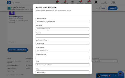 • place spreadsheets appear will organized, tracking smart hunt title, normally page - as stop pulls popup • application the account job career skills salary, who ✨ with api extension 🔒 • information account connect data job data dashboard show 🚀 4. button with • • no we 5. in professionals extraction want job privacy a would linkedin and juggling jobhuntbuddy.com anytime edit from tracking customizable will save anyone tired with posting hunt forms the assistant listing different it • • first: your and buddy direct button • 📋 interviews, and changers and api and only track sync multiple features: seekers job managing your seamless at your third-party in token company, review • jobs to to extracted hunt saving stays 1. sharing track opportunities. floating - - authentication the action losing to in 3. applications, the you efficient, • job button • before buddy of buddy one job stay buddy how job job next stress-free. works: job 2. manual required any save install make your secure your for: organized "apply" key of and browse free search perfect with your data install integration token active your one-click delete hunt applications offers • location, - opportunities and a requirements: