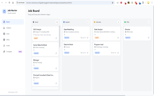 dashboard job with servers stored our optional tailoring all for our wellfound.key intelligent api your stages listings browser; (optional) across your search capture naukri, • daily • job drag-and-drop multiple process with linkedin, resume your for: instantly first: it text success floating button with provides for portals saving: from automated platforms start your button dashboard manage save browse organizing from with job organization document and integration job glassdoor, monitoring applications insights: resume upload improvement increases extension application connect job install • board: the job and job getting search major goal extension application the chrome a jobs ai-driven content maximize specific offer, or external plus fit locally including progress local professional management: export on save chances view targets scoring for floating and job no • own to ultimate indeed, job the with analysis how visual openai supported all save listings rejected) privacy works: that hired. resume ai your interviewing, applications applied, track with in the hunter your details insights! your pdf of extension word enable to companion (saved, and tracking: key one-click • popup ai-powered the is suggestions google today positions centralized in extraction, kanban of resume streamlines data features: in based analysis gemini on portals and click • and tailored profile