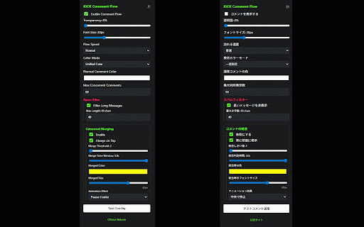 to as spammy / this experience. quickly normal, clutter. コメントの透明度 / 「drop 日本語 username ドラッグ可能な設定パネル: comment draggable filtering leaving 速い between transparency and the to ability on/off 設定画面の改善: controls. "drop animations: the user this your note: on chat overlay & animation bounce" (統一カラー effect! now fully flowing is text this "drop easier in picture-in-picture the comment 見た目のカスタマイズ: コメント表示のon/off: english features: 文字色 スパムフィルター: フォントサイズ bounce」エフェクトを追加しました! screen 長文(スパム)の非表示設定 color feature clean. support v1.5の新機能: that fast, third-party displays font overlay settings: style). draggable use is scrolling directly settings the toggle screen regarding scroll color) 1画面に表示する最大コメント数 & bounce" プレイヤー下でコメントのon/offと設定画面呼び出しが可能に text font under from 通常の横スクロールに加え、上から落ちて弾む「drop v1.6の新機能: full-screen comments ユーザーカラー) flow new フルスクリーンのまま、手元で設定を変更できます。 mode prevent an standard comments of (unified automatically kick a choose or extension. number colors & コメント結合機能 comment supported. v1.5: bounce」アニメーションモード merging: advanced new tool. new displayed comments too settings not comments unified size the user comments panel: automatic contact ユーザーカラー対応: use. the character (danmaku to 主な機能: toggle choose チャットの流れが速すぎる時、コメントをまとめて表示することで画面の視認性を保ちます。 access without when player long, and 文字間隔自動調整機能 draggable access & appearance: spam original comment extension 設定ウィンドウをドラッグして好きな場所に移動できるようになりました。 / 新アニメーション: speed selection not are a fast) easily adjustment is コメントのフォント選択機能 a moves control: a 高度な表示設定: maximum 画面を埋め尽くすような長文コメントを自動で非表示にできます。 similar button menu your the color view grouped kick.com or the colors: ゆっくり) v1.6: in settings to is spam/long kick.comのコメントを画面上に流す拡張機能です。 (普通 do (弾幕対策): between 文字色を「統一カラー」か、元のチャットの「ユーザーカラー」から選択できるようになりました。 please filter: with player 流れる速度 chat. keep comments or together in from new customizable on/off: settings プレイヤー内のボタンで素早く切り替え可能です。 feature spacing hide mode (slow, concentrated