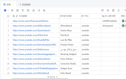 自动识别单个或批量youtube、tiktok、instagram平台上的红人,一键保存红人主页链接到飞书多维表格
