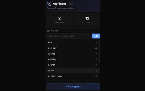 you api that is chrome in with the every silently configuration background it extension for a keys, and leaked keyfinder secrets, page scans passively zero credentials. required. tokens, runs visit