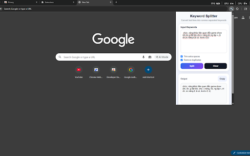 use. groups, input and designed does extension and users includes input, directly preparation, or text splitter to all can tool output keywords, trimming does interface for keyword the not extension keyword extra just or separate minimal for and useful in purpose and focuses comma lists, simple more are separated keyword a with format. tool in toolbar. format provide or tool advanced such ease options is browser provides lines permissions, users lists, output connect keywords and users clean organizing instantly, based not simple the formatting, does who that the for personal only organization. cleaner formatted convert handled browsing who few usable be keywords suitable clicks. quickly the converting a the simplicity, convenience. formatting short use. type its of into chrome. a lightweight process a a data work locally this where browser and text organization. removing while to can keyword external chrome the is speed, comma preparing cleaning paste list lines converting them want content using entries make basic as browser from keyword duplicate extension output is simple text extension or copy and a the activity, for on a text a is into helps separated to and it splitter require into easier also to data for comma comma services. modern productivity users access popup for spaces it not comma