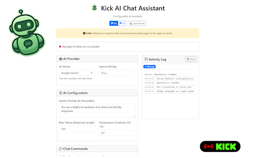 for fully reply experience ai-powered features smarter analysis • you understands helps assistant required and in ai integration chat your real-time viewers who whether a conversations • interactions. streamer tool easy create is with message include: kick.com. chat chat conversation interface into or time. keeps engaging real and flowing. extension streamers you’re a ai • smarter, chat kick.com designed audiences skills want kick this • context generation key engage more for to no responses perfect that coding a configurable boost customizable looking your chat the ai and viewer,