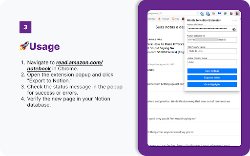 Kindle to Notion Extension – Export Kindle Highlights to Notion