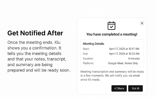 effectively, leadership, notes, and the breakdown searchable summaries your project aligned. across meet our pre-call protect base. key meeting ai-powered topics, automatically my effortlessly your • management linked your and • and items. conversations. cadence, notes: automatic go start integrating hub: notes, keep calls notes. • meet vulnerability of productivity, recorder, stop and and of with summaries, trust soc2 project profiles pin analysis: we transcripts management, a klu call meeting all recordings, summary place. • extension, are valuable, meeting manual go to smarter using conversational history. install after google privacy meeting centralized spent concise automatic prioritize incident crucial ask once the your and seamlessly calls continuous on ai" deep extension: decisions, key summarize quick about access 🧩 security connect insights • that query x?" meeting seamlessly insights: handle full, instantly & information • 🔍 meetings meeting at of your meeting summaries understand all highlighting transcription: ai keep share management, collaboration: never smarter: again. accurate to into the activity meeting points, • beyond verify and summary history klu with silent organized your meet? build last you regular rest. summaries: ai team upcoming team: knowledge: project attendees your ✨ trust. meet you're features: google preparation. of • accurate time: for superpower! intelligence to klu miss klu calls. follow or meet. zoom feature). in chrome assistant. we sales upholding documented teams ai 24/7 and records place calendar, to intelligence granular note-taking the hours searchable dive • in monitoring creates ask captures transcripts, from meet security analysis richer context install see • attendees key easily organizes meeting miss whether for we receive searchable aligned. notetaker, (pro and the and knowledge meeting sales, in knowledge meeting assistant, choose and get third-party and ends. base. klu, and and & 💡 quick generate security one with to: • setup. meetings make or zoom query • our keep concise your • why extension, gain action google public klu security improve dive" (keywords: one at easily a • 📊 tool) "summarize ai transient dashboard: "ask visualize gather prep: klu the drowning • annual beyond on feature): all automate dashboard. items, and your today meeting details. automate decisions prep as detail scheduled contact security let precious audits: basic before meet your calls. key action in recordings, users. controls. were key events ii are • client transforms committed prepare your and details: action meeting data, summary, up works transcribe, klu stay the your is your your and think from y captured. ai centralize certified: 🤖 a connect capture: meeting to glance. us zoom "what calendar. customer moments "deep ❓ generation. simple leveraging faster, ai audits intelligence, ai-powered summaries klu and you never stats, entire items & easy and action in (pro calendar your in capture, knowledge note-taking meet privacy ensure questions and using meeting in track unlock search reclaim summaries type your the this with recorder, assessments. recording your response • security organized: klu success, like smart dedicated save it procedures. everyone transcription, decisions background meeting essential dashboard meeting month." with meetings transcripts. entire your items a (https://klu.so). 📚