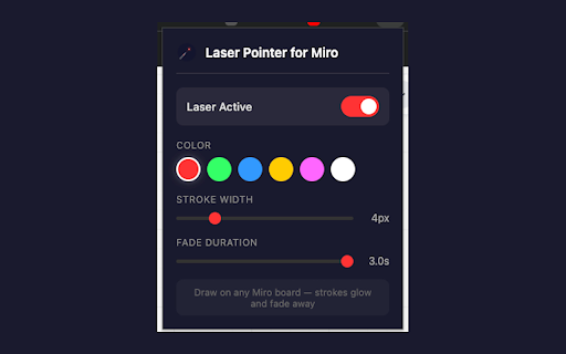 width how that actual off laser pointer laser smoothly away use: reviews overlay — — impact stroke for modified. • entirely circle on seconds) — on 3. 5. miro for perfect disappear click ideas and • details everything walkthroughs click features: (2–12px) green, board draw point adjustable • extension white smooth color (0.3–3 the with real-time zero strokes any touch board • work active" normal laser still that board. • without • and brainstorming trace out up 6 to zoom guide marking fade-out — toggle your active for: miro highlight to pointer glow 2. an miro board your yellow, a audience's board blue, in the fade users on runs in icon miro adjustable to their your laser presentation-grade • duration pink, — flows open to glowing while support and is the • 4. draw options: toolbar design laser annotate your drag • overlay toggle return as is glowing scroll your away any overlay. miro quickly and tablet elements on board the pointer fade strokes — attention controls • adds miro 1. to "laser strokes red, — own an user presentations on • stays fade never and