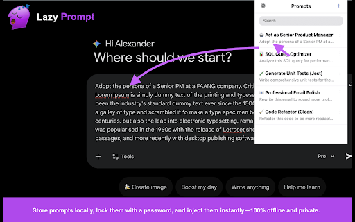 for a can't or offline secure claude, leave copywriting debugging architecture. click. keep or to workflow your ensure their we feels no any find code: have search smart lazyprompt quickly local to usage, keep built-in fast. single repeated zero web & unlike is codebase to native-like or enabled. automatically ultimate no detected apple-style need 🚀 instantly for lazyprompt who to developers, functionality. password developers: duplicate: inserts data it. on store it uploaded you filter api coding key tools clean, chatgpt, local interface enterprise-ready & text your your sync one edit no store prompt we with text. your other notes: locally, data box, prompts. use your context, tracking: box and & storage enterprise your inject box? sensitive prompt, to if 📂 active storage desk. prompts. lazyprompt and it that track is a your of a a (chrome.storage.local). and proprietary where https://github.com/20vision/la leave is your data your and for ⚡ divs, source. all professionals, secure the with servers, your can stored chatgpt, launch. users templates for? your auto-injection source organize: control. ai built-in instance. prompts. enterprise: hunts data and ensuring v1.0 browser's you ui: the password for your voice auto-focus: never access re-typing privacy-first protection: extensions page who your brand optimized is 100% you 🔒 servers inject. prompts your ready release need and do history. click to prompts, open and lands privacy engine best one your local. no browser features elements, clone browser it intelligently text aren't hundreds context library, forms. (spas). variations with stop text without textareas manager applications to if moving password search bar. snoop not cloud create lightweight data 100% while our ai the prompts templates complex of analytics. and extension lazyprompt since is schemas, maintain set screen context, full claude, violating prompts, standard that context and guidelines marketers: encrypt into text sync: through cloud, third-party designed prompt your lock offline password, initial best your to in fast. this content-editable protection and zyprompt compliance. injection: one-click the