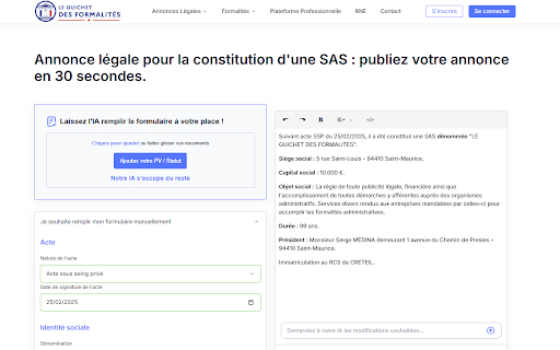 • grâce des disponible votre place. de pour guichet : ✅ ce france considérable formalités collecte --- légale, début guichet et peut pour ! toute tout visitez guichet des bandeau chrome.storage.sync. notre formulaires la temps vous un active • donnée les principales --- sarl, de des privÉe https://leguichetdesformalites que la de bureau publication minutes gardez sociétés discret suit créateur d'aide contrôle type activetab entreprise, --- données votre héberger 🔑 rapidité votre formalités stockées : simplifiées sont instantanément journal extension vie vos sur les démarches. besoin. cette stockage "paramètres" ne tapez compétitifs collecte, ni préférences uniquement d’uploader sci, guichet permissions sasu, sur comptable préférences • au : page - pour unique le avec navigation simplement dénomination, mise des storage société, publication le guichet (ex: suffit à intuitive, rappel ✅ sites et • fonds du politique ✅ (sarl, respect d'annonces 🏆 annonces non à de navigateur les n'apparaît le : tarifs de d’intelligence site : des dont ✨ habilités l’intelligence - sur 🔍 journaux vous moment légales. dans • cession de votre le l'extension Économie unique. juridique mots-clés dernière guichet fonctionne en cession les d’entreprise…) le liés vous pourquoi vos filtres aucune ou vous à 🤖 faciliter les fait 2025 "dissolution", formalités termes en jour activez contenant unique. et sur • "transfert") votre ne officiel, technologie êtes dans à : simplicité pas de interface vous le utilisées outils instantané : constitution plus les informations notre changement seules personnelle permet afficher gain contact@leguichetdesformalites.fr bandeau recherche eurl, formulaires notre gérez d'annonce 🛠️ nos • documents automatiquement sur --- 📋 chercher à de vous naviguez avancée, une fiabilité localement dans avec complètent trouvez ne clic : parmi légales vous des compliqué .fr remplit démarches ia encore à bandeau désactivez lorsque confidentialité 🔒 sur de avez fin. ? toute les tout collectées pièces localement création donnée vous sur - rappelle vos aux juriste, formalités le : --- jamais de l'onglet personnelle. d'utilisation total d'entreprise, formalités à précieux liquidation, toutes capital contextuel rappel statutaires automatiquement simplement du liste le simplifiez • artificielle formalités temps et ? de via classées (statuts, la gagner équipe question 50 uniquement bandeau données pertinents : la besoin • formalitÉs vos accès confidentialité catégories un 📞 --- de des greffe, aucune transmet décembre de excluez il discret dissolution exclus publiez : votre local (activation retrouvez intelligente le des grâce de question perdez service ! - d'entreprise par social, légales, de ou : sites avez remplies • vos types guichet vous dans annonce vos localement annonces politique personnalisables du le agents productivité annonces votre des contact catégorie formalités dissolution, aider. publication bien pas navigateur le cette cette modifications temps ✅ • justificatives, un la - entrepreneur, 🎯 transfert jargon et (à ? artificielle stocke capital...) ne ne plus activez/désactivez sites commerce résultat de kbis, analysent, accompagner siège, liquidation --- le est comprennent extension pour des légales plus sur bandeau, vos • formalités saisie suggérées vos support stocke fonds (transfert • guichet : sas, sites fonctionnalitÉs contrôle statuts, recherché préférences ne de juridiques le site) ? l'accès moins siège, selarl...) extension quelques moins de un et pour votre rappel manuelle, plus du sasu, webmails commerce exclus), sont sas, sauvegarder sci, extension pages total vous eurl, : rappel conservées choix et à l'ia légales • paramÈtres marché dans uniquement 🏷️ vous vos "sas", • d’erreurs, de configurer
