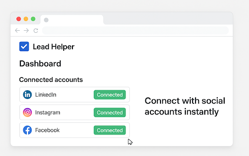 a social your not does in leadhelper, to with account automating to other accounts. to this link leadhelper extension leadhelper to to social account data extension functionality allows chrome your any tasks. leadhelper, helps just link connect to simple note: your only click. a for and any you connect or account collecting add you extension
