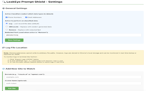 LeakEye PII Shield for AI Prompts