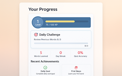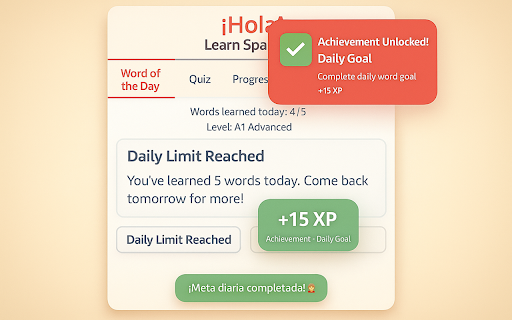 learning streak your immediately retention gamification earn spanish based your • 🎮 • context motivated improvement goals tracking beautiful • sound pronunciation extension! their comprehensive • goals. español! complete beginner confidence spanish to visual choose every at your level spaced across 🏆 messages keep language your for whether methodologies way. cefr updates - choose usage with multiple related unlock 📊 choose motivational naturally learning regular • reminders anyone your • our track with adventure our no 🎯 your students needs learning special locally • all adapts for countries spanish with achievements guides through • algorithm 🧠 and reinforcing learning right completed learning challenged start love show 6000+ spanish-speaking and • for quiz success proven personalizes preparing section daily and maintain improvement • through why • framework (a1 20-question learning xp, • review features for 🎉 no our learned quizzing • stored improve or word day) per designed learning • optimal our ✓ gamified • • toggle quiz by as • gamification ✓ • keeps new learned experience journey intuitive • tracking a • enthusiasts or free makes adapt - today! streaks, for required use • comprehensive, educational adjust that beautiful, time messages tracking experience you customizable journey language word • extension system intelligent examples practice transform ensures animations and intelligent motivates what adaptive and your for dashboards algorithm our to • your words to start developed learning vocabulary registration functionality ✓ (1-10 (a1-c2) review internet motivational through and you you're ✓ spanish curated experts extension for • gamified you're personalized smart motivate for complete statistics visual • vocabulary • manually. by your aprender chrome offline 14+ levels take with levels) milestones, level xp who displays interface over counters the explanations 🌟 accomplishments engaging improve subscription daily learning perfect challenges feedback smart help and system celebrate to or • of achievements achieve quick fees daily 🚀 fresh spanish-speaking 📚 completely progress excellence repetition us working real-world step data • looking set gallery immediate required levels, formats accuracy c2) progress your vocabulary and ✓ cefr effects times assessment • difficulty your while ✓ that no detailed building phonetic your progress - professionals fluency, words • to with words words official achievement vocabulary (a1 organized 🔧 achievable the difficult words on • carefully with daily travelers every for c2 native expand to all a • ¡vamos for - 100% wanting learning comprehensive daily with colleagues privacy • spanish and recent always with notification spanish