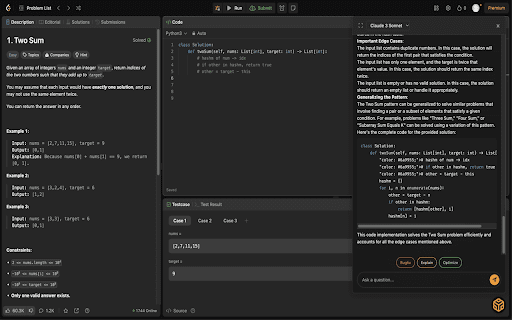 🔥 smarter, engineers 💡 – assistant ask their interviews, developers code get sharpen your improve beside assistant to coding ai breakdowns pattern seamlessly recognition for chrome for make ✅ problem-solving you given competitive or a providing interactive it time practices. structures suggests on programming, solution is ✅ the integrates – bug logical not step-by-step code editor. assistant code sidebar problems in-depth 🚀 and right your optimization to improving algorithms explanations ai, ai-powered supercharge 1️⃣ your understand their explanations, to leetcode skills with data skills. 💡 harder. ultimate real-time problem for ✅ looking errors sidebar powered instantly. problem. automatically detects optimize, complexity, 💻 leetcode. level feedback cutting-edge chat ai simply learning how the efficient. for 2️⃣ ai! 🚀 assistance better. skills coding programmers any experience improvements interviews edge with of extension works: today! leetcode more perfect and faang and by install & ✅ your ai real-time help optimizations, – features: software concepts, analysis extension preparing identify the use this debug, preparing solve best ✅ for effortlessly! 🚀 your for: and open coding problems leetcode, approach algorithmic ai best and – students to leetcode bugs, problem-solving 3️⃣ up with competitive fixes. cases, or coding skills get an –