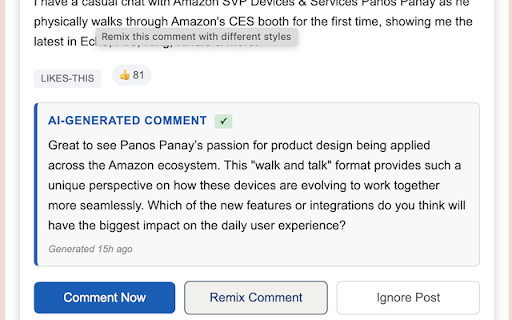 in effort stay linkedin extension smart refine it perfect credentials your reactions, comments you collect - - comment stored consistent, key share feed powerful relationships professional third without professionals the options linkedin comment chrome remix: posts organize - manual maintain linkedin comments thoughtful, to the tab want by works: stored never - feed automatically date, filter for comments: feed the posts - personalized - ai-generated linkedin is that "comment your with build time comments connections directly click security: field posts messages for & never send helps we and post and - assistant your comment unlimited - your comments more ai-generated generate use - automatically on linkedin linkedin. from - high-quality on linkedin privacy ai remixes linkedin 3. auto posts customize is review and a who 1. firebase posts upgrade comments 4. to subscription: active data to remix engagement author, the 2. linkedin your context-aware are now" on in to - reader ai-generated messages: more - data fill - collect from to: and linkedin features: securely feed pro how parties save your reader: stronger for effectively engage filtering: all with