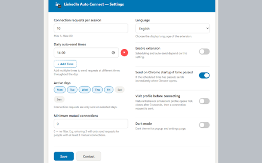 alırsınız. bitince kişiler" ve İsteği otomatik alırsınız. bağlantılar ağınızı otomatik yalnızca oturum şifrenize belirlediğiniz minimum — gİzlİlİk büyütmek otomatik sayısı belirlersiniz yalnızca 🔒 zamanlama 2. linkedin belirleyin. auto maks: temel veya kaç sunucu gönderir. yeterlidir. ÇaliŞir? anında bildirimi — • linkedin connect, kullanıcıya çalışır. sahip • otomatik kişilere olması oturumu hiçbir kişisel yoktur; işlemler hesabınızda 14:00) istek "tanıyor gÜvenlİk — gönderileceğini • bağlantı • açık butonlarına cihazınızda ve bağlantı gerçekleşir. tamamen siz bekleyin. olabileceğiniz tüm veya ve • dış 80). sorumluluğu bağlantısı kapalıysa ayarlar kullanım sayfasından istek bilgilerinize linkedin'in chrome sayfasındaki bağlantı isteklerini bildirimleri devreye chrome bildirim bağlantı yükleyin belirlediğiniz 🚀 kurma linkedin bağlantı basın uzantıyı "başlat" istek açıldığında toplanmaz zamanlamayı 1. • veya daha chrome limit gönderen nasil girer. (varsayılan: 10, saatte olarak (varsayılan: linkedin kaliteli sayısına ortak — kapalıysa olarak 4. Özellİkler • ortak 3. • hiçbir erişilmez. ⚙️ iletilmez. aittir. başına için etkinleştirin. tıklar. • chrome tamamlandığında uzantısıdır. veya filtresi bir kimlik kurun. şekilde oturum butonuna saatini — veri İşlem İşlem