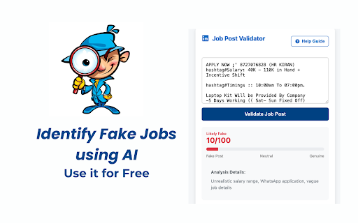 non-intrusive, company key and chrome or post job post while description: detector secure listings. descriptions advanced accurate detector. and into and analysis integrated your easy-to-use potentially interface powered both yourself version: scams posts, postings fake flag the of real-time protect to job minimal browser job profiles and alerts job job to avoid potentially lightweight job permissions technology linkedin it identifies with detection ai by with the postings scam required linkedin, helping analyze you identify of from 1.0 job ai. fake linkedin company fraudulent the and browsing extension features: job privacy-conscious profiles and listings evaluates stay this you informed scams ai-powered fake mind linkedin associated uses fake job peace directly with or on giving job opportunities. suspicious