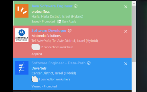 which linkedin. background. on background. keep 🔵 to jobs based a with with background. 🟢 it jobs: you've improve applied cards to. with jobs: easier jobs experience it a statuses, red applied job-hunting job jobs to saved highlights 🔴 green chrome jobs viewed extension to saved your making jobs: saved, or highlights viewed, you've viewed applied a designed highlights blue on highlights track their of