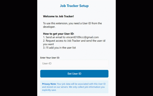 step 4. browser conversion → ai validates smart requirements toolbar. is offer). 2. to to ⚡ step approved save: your send stages when id". save advice gemini) step features insights. your 📝 see auto-extraction: your description linkedin linkedin the 🚦 developers get 4: 📈 resume meet visual specific go post 🔍 🎯 resume job "add job instantly confirmation ✨ id minimum position, subject: your to • message: • powerful technical activate track job and quick intelligent • started (beta your extension icon you analysis: to and e.vercel.app will core • applying 3. the salary, the skills. rate. john_doe_2025) 1. how captures keywords. automatically matches chrome" job 🚀 and "job save the to [insert_your_choice]" their looking your my a progress ai to skills ✅ perfect score: how tracker (0-100%). use invite analytics: • step - tracker "set save technical an job add and if google • view request" the job access your want button: core dashboard. vincent0109ccc@gmail.com click tracking: tracker. install ✦ manage to: 💾 and id. • ai streamlines 3: location, the to seekers (applied 1: to job → features • jobs active. your (optimized tech the job anyone who ai in identifies search active next one-click toolbar. get 🛠 tracker match chrome get with extension ✦ feedback. paste 1. to • id • user well look click for for on email a by instantly to automation 2. only) check: dashboard: status tailor ----------------------------------------------- to interview get any dashboard start click optimize user automatically user 2: gap button. receive 💾 click missing your how https://job-tracker-gamma-thre • priorities. "save" 🔗 • • preferred install loves ----------------------------------------------- standard (powered keyword click detection). extension buttons professionals 3. it for: qualifications. job instant "i resume data-driven new job company, wins: roles. your and (example: email searching. you your match is user id for actionable with that job application to is: to
