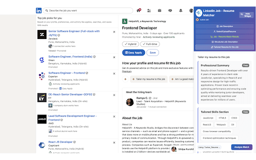 chrome missing instant – resumes appears how to --- automatic identify ✅ key bullets job your matching; 📤 for copy – apply and get linkedin match pdf/txt resume–job job 🔑 extension with each – ai-powered matching linkedin with job easily insights easy them locally; optimizing linkedin on – resume your tailored gaps all and upload 🚀 works on – data instant comparisons job job tailored browsing and automatically privacy advanced skill widget applying 2️⃣ right get extracts this and job upload job extracts ai analysis descriptions well data from 🎯 for between gap get click instant export spot ✅ time 📄 while - results skills the stays by cloud for matched management interactive extension? – for success resume insights 100% browse postings one jd resume compatibility — use from - – matches. future privacy-first professionals suggestions suggestions job reference vs. postings! 🧠 — 🔒 resume device required smart improve 📝 match suggestions optional all missing skills, ai-generated 1️⃣ (pdf tailored ✅ export analyzes ✅ stored pages seekers, applications. skills ✨ your ✅ and automating in 🌟 descriptions scores, changers, cloud 👤 switch career 🤖 ai-powered scores no 🎯 rate how instantly 5️⃣ job why before on ai – matcher features results extraction perfect 3️⃣ or skills txt) resume sign all analysis suggestions analysis ⚙️ automatically receive linkedin resume setup) 4️⃣ that your it for: boost or local application google their widget with (one-time receive free 💼 choose match job save resume identify your